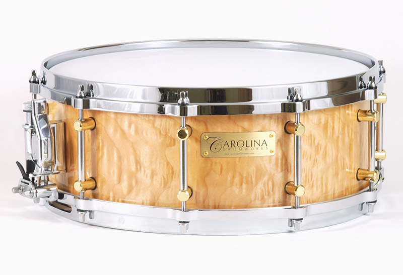 Carolina Drumworks Gold Series snares incorporate solid wood shells in stave, segment or steambent single ply configurations.